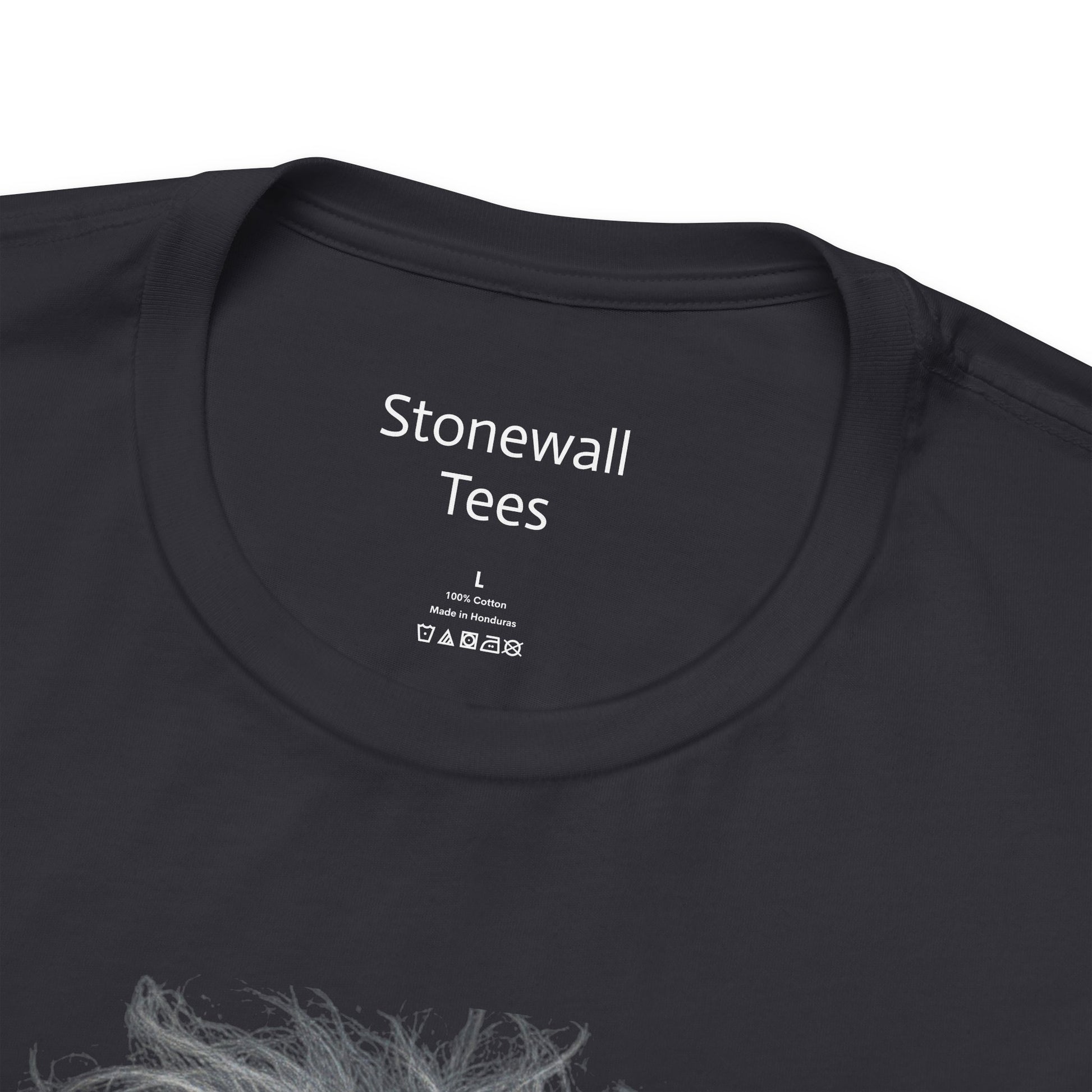 This lightweight jersey tee carries a bold portrait that sparks curiosity and conversation. Soft, breathable Airlume cotton keeps the shirt comfortable for long days — whether layered under a jacket or worn on its own. The portrait sits centered on the chest, rendered with sharp detail and rich tones that stand out on the clean white canvas. Subtle construction details — side seams, ribbed collar with shoulder tape, and a tear-away label — make this shirt feel thoughtful and durable. Wear it to casual meetups, creative workshops, or days when you want your outfit to start a discussion rather than blend in.
